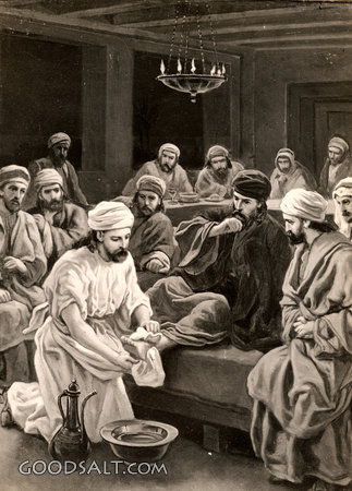 Jesus Washing Disciples Feet John 13:1-20 week, Jesus, testament, feet, new, washing, passion, supper, disciples, Shares, William Fredericks, Washes, D00537 PROJECTION - License for PowerPoint™ PRINT – buy a print of this picture; optional frame Bible Hub |