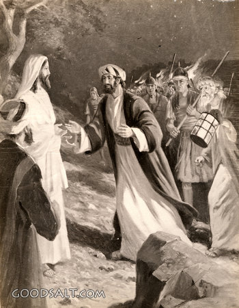 Jesus and Judas Matthew 26:47-56 Mark 14:43-52 Luke 22:47-53 John 18:2-12 week, Jesus, betrayed, testament, new, judas, easter, passion, Scourged, Copeland, D00737 PROJECTION - License for PowerPoint™ PRINT – buy a print of this picture; optional frame Bible Hub |