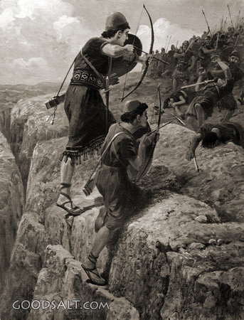 Jonathan and His Armor Bearer 1 Samuel 14 testament, old, samuel, kingdom, united, armor, jonathan, kings, Philistines, Fights, Copeland, Bearer, D00753 PROJECTION - License for PowerPoint™ PRINT – buy a print of this picture; optional frame Bible Hub |