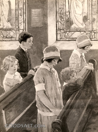 service, church, worship, praying, children, Florence Liley Young, D01083