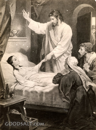 Raising of Jairus' Daughter Matthew 9:18-26 Mark 5:21-43 Luke 8:40-56 dead, Jesus, testament, new, jairus, daughter, raising, Healings, Heinrich Hofmann, D01184 PROJECTION - License for PowerPoint™ PRINT – buy a print of this picture; optional frame Bible Hub |