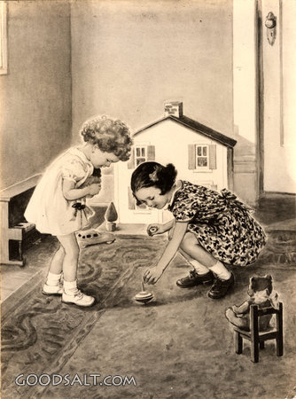 playing, extra, americana, children, Dorothy Handsaker-Scott, Indoors, Tops, D01323A