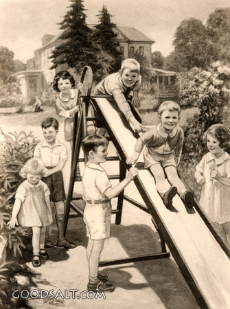 playing, slide, playground, americana, children, outdoors, Mrs. William (photo) Durrant, D01412
