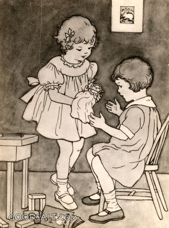 playing, sharing, doll, americana, children, Indoors, Katherine R. Wireman, D01682