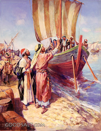 Barnabas and Paul Depart Acts 13 Acts 20 third, testament, journey, history, new, paul, depart, missionary, macedonia, barnabas, greece, acts, Troas, Arthur Ernst Becher, 00493 PROJECTION - License for PowerPoint™ PRINT – buy a print of this picture; optional frame Bible Hub |