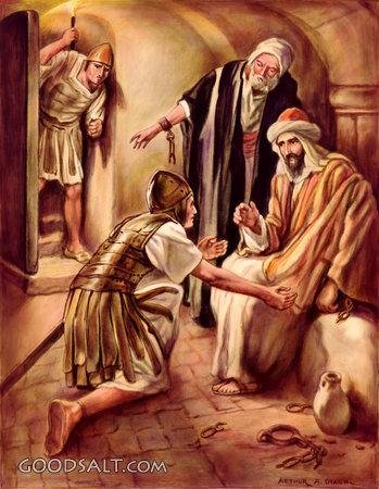Trembling Jailer Fell Down Acts 16 testament, journey, history, fell, second, new, prison, missionary, jailer, acts, Philippi, trembling, Arthur A. Dixon, 00800 PROJECTION - License for PowerPoint™ PRINT – buy a print of this picture; optional frame Bible Hub |