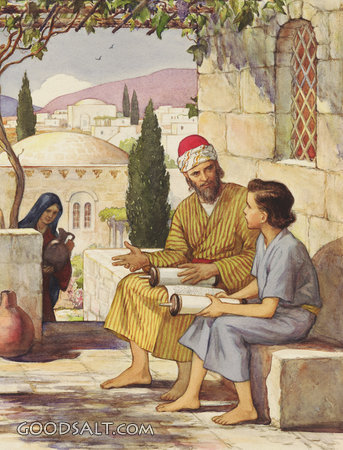 Paul Visiting Timothy's Home Acts 16 Acts 18 reading, testament, timothy, history, visiting, teacher, scroll, new, home, paul, courtyard, general, acts, Dorothy Handsaker-Scott, 01064 PROJECTION - License for PowerPoint™ PRINT – buy a print of this picture; optional frame Bible Hub |