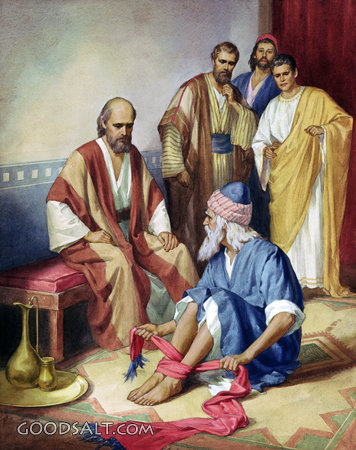 Paul and Agabus Acts 21 third, testament, journey, history, jerusalem, new, prophecy, caesarea, paul, missionary, acts, Cyprus, Agabus, Griffith Foxley, 01917 PROJECTION - License for PowerPoint™ PRINT – buy a print of this picture; optional frame Bible Hub |