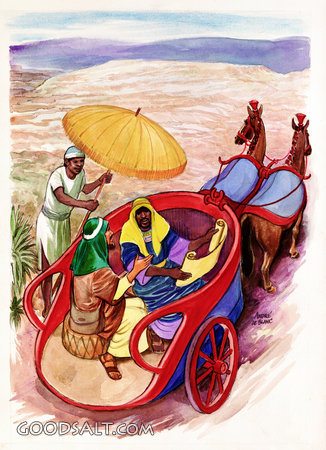 Ethiopian Learns God's Word Acts 8 god, testament, history, official, church, ethiopian, ministry, new, philip, judea, samaria, word, eunuch, acts, Learns, Andre LeBlanc, 05577 PROJECTION - License for PowerPoint™ PRINT – buy a print of this picture; optional frame Bible Hub |