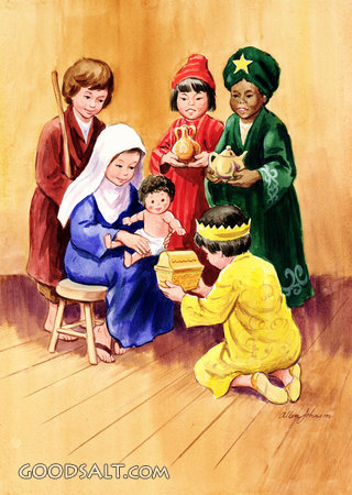 Children's Scene: Wisemen Visit Baby Jesus Matthew 2:11 Jesus, activities, church, scene, baby, visit, children, stand, Crafts, Allen Johnson, Ups, Puppets, Wisemen, 05097 PROJECTION - License for PowerPoint™ PRINT – buy a print of this picture; optional frame Bible Hub |