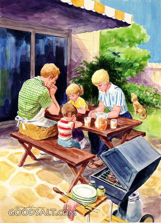 praying, camping, family, americana, outdoors, picnic, Allen Johnson, 05197