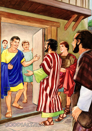 Peter Greeted By Cornelius Acts 10 testament, history, church, peter, new, judea, samaria, cornelius, acts, Meets, Andre LeBlanc, Believes, Greeted, 05221 PROJECTION - License for PowerPoint™ PRINT – buy a print of this picture; optional frame Bible Hub |