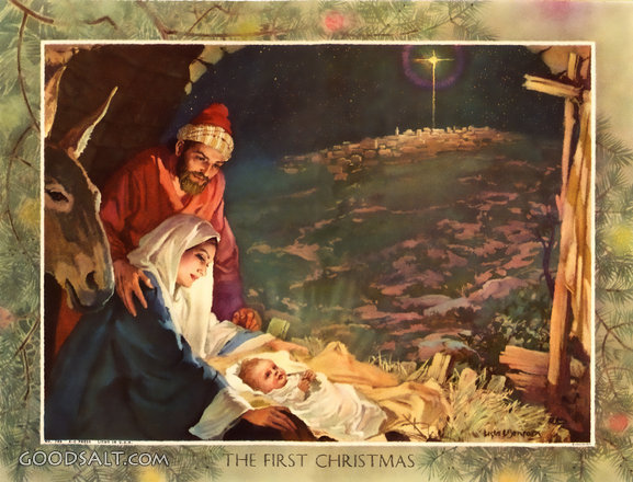 The First Christmas Luke 2:1-7 nativity, Jesus, birth, first, testament, early, baby, joseph, mary, life, ministry, new, christmas, Leslie Benson, 10054 PROJECTION - License for PowerPoint™ PRINT – buy a print of this picture; optional frame Bible Hub |