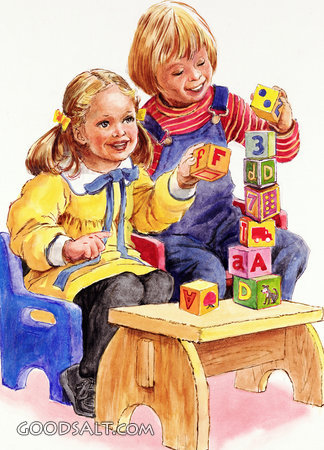 playing, two, americana, children, blocks, Indoors, Tom Leamon, 05090