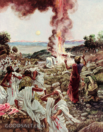 Elijah's Sacrifice at Mount Carmel 1 Kings 18 carmel, testament, divided, old, elijah, kingdom, baal, mount, sacrifice, kings, prophets, William Brassey Hole, Defeats, 01136 PROJECTION - License for PowerPoint™ PRINT – buy a print of this picture; optional frame Bible Hub |