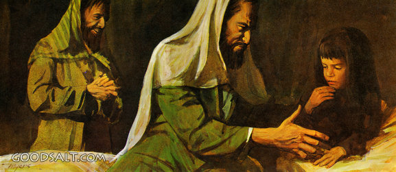 Jesus Helps Jarirus' Daughter Matthew 9:18-26 Mark 5:21-43 Luke 8:40-56 dead, Jesus, testament, new, jairus, daughter, helps, Healings, John William (Bill) Jr. Myers, Jarirus, 04707 PROJECTION - License for PowerPoint™ PRINT – buy a print of this picture; optional frame Bible Hub |