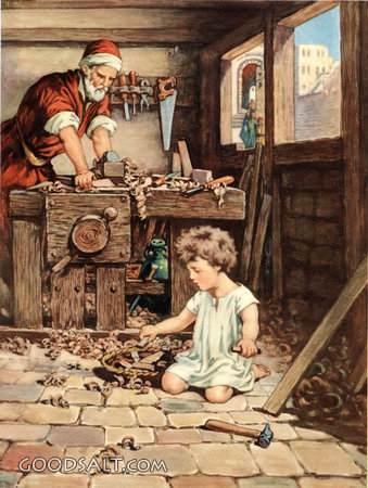 Baby Jesus in Carpenter Shop Luke 2:39-40 Luke 2:52 childhood, Jesus, testament, early, carpentry, baby, life, ministry, new, carpenter, shop, Learns, Maud T. Atkinson, 01540A PROJECTION - License for PowerPoint™ PRINT – buy a print of this picture; optional frame Bible Hub |