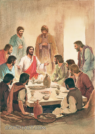 The Last Supper John 14:1-31 John 15:1-27 week, Jesus, testament, new, bread, wine, easter, passion, supper, disciples, Shares, Blesses, Paul Karch, 05220 PROJECTION - License for PowerPoint™ PRINT – buy a print of this picture; optional frame Bible Hub |
