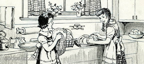 americana, children, chores, Indoors, Doing, Dishes, Clara Atwood Fitts, 08182
