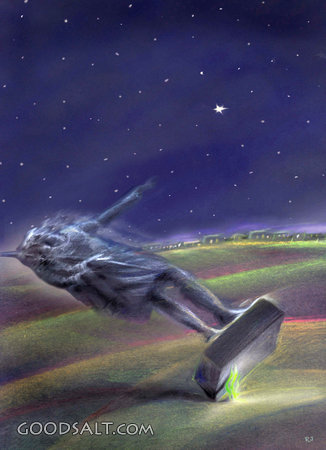glow, hillside, statue, blue, star, plant, stars, sprout, rolf jansson, topple
