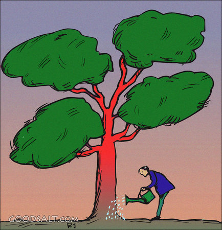 Figure Caring for a Tree Jeremiah 17:8 Mark 4:30-32 Matthew 13:31-32 evangelism, growing, growth, grow, oak, green, flourish, flourishing, thrive, thriving, drawing, work, working, contemporary, caring, care, tree, garden, plant, watering, editorial, airbrush, gardener, can, watering can PROJECTION - License for PowerPoint™ PRINT – buy a print of this picture; optional frame Bible Hub |