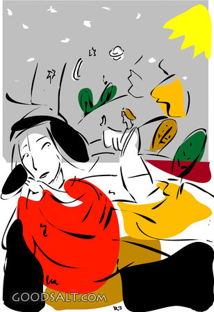 Woman and Angel Judges 13:3 symbolism, angel, modern, autumn, bright, fall, colorful, drawing, color, line, woman, symbol, ink, editorial, concept, computed PROJECTION - License for PowerPoint™ PRINT – buy a print of this picture; optional frame Bible Hub |