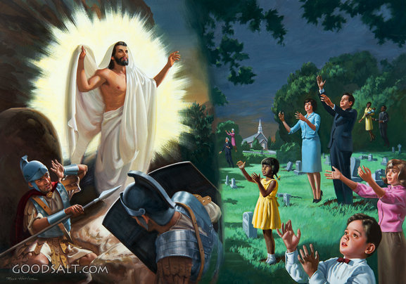 Christ's Resurrection and Second Coming Revelation 22:12 christ, Jesus, glory, family, resurrection, easter, passion, second coming, roman soldiers, russ harlan, cmrs242resurrection001crh, cmrs242resurrection0, bedtime story, k-861, k-944, bb-6739, rhpas0030, christ's resurrection and second coming PROJECTION - License for PowerPoint™ PRINT – buy a print of this picture; optional frame Bible Hub |
