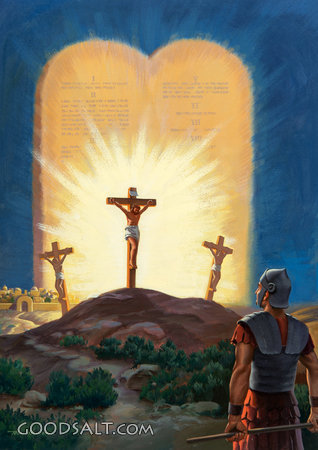 Crosses, Commandments, Soldier Matthew 27:54 golgotha, Jesus, cross, crucifixion, commandments, ten commandments, roman soldier, russ harlan, btcx236commandments001crh, btcx236commandments0, rhpas0034 PROJECTION - License for PowerPoint™ PRINT – buy a print of this picture; optional frame Bible Hub |