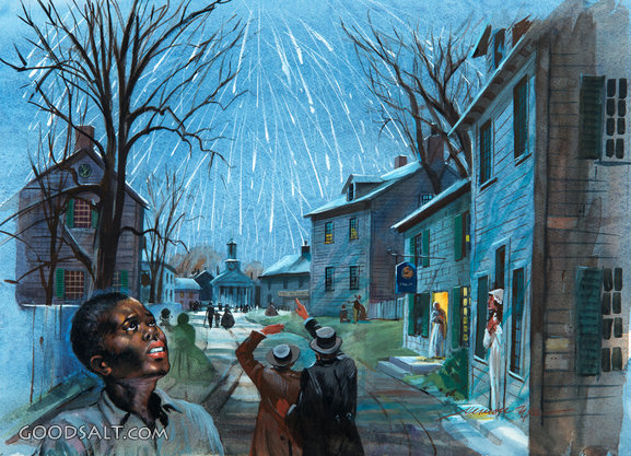 Falling Stars Mark 13:24-26 Revelation 6:12-16 people, midnight, falling, black, looking, intense, display, ethnic, boy, meteor, shower, town, prophecy, night, village, wooden, astonished, signs, stars, homes, 1833, old fashioned, events, vernon nye, stars falling, falling stars, rhpas0080, african american boy, doorways, u[ PROJECTION - License for PowerPoint™ PRINT – buy a print of this picture; optional frame Bible Hub |