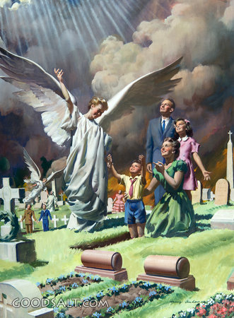 Angel and Second Coming John 11:25 Daniel 12:2 John 5:28-29 Revelation 20:12-13 1 Corinthians 15:52 1 Thessalonians 4:6 angel, joyful, raised, father, dramatic, greeting, redeemed, lighting, opened, cemetery, graveyard, coming, second, worship, guardian, resurrected, son, praise, praising, open, family, mother, daughter, resurrection, archangel, publishing, harry anderson, opens, reunited, graves, Raises, incorruptible, cemetary, newness of life, rhpas0090, angel and second coming, last trumpet, review & herald PROJECTION - License for PowerPoint™ PRINT – buy a print of this picture; optional frame Bible Hub |