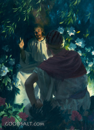 Nicodemus and Jesus in Garden John 3:1-21 John 19:39 John 3:1 John 3:1-5 born, again, salvation, meeting, Jesus, teaching, listening, discussing, discussion, tree, meet, night, garden, visit, nicodemus, harry anderson, born again, night time, private, olive tree, bible readings, bsnt257nicodemus003cha, d-6474, bb-2759, k-1147, rhpas0117, nicodemus and jesus in garden, nightime PROJECTION - License for PowerPoint™ PRINT – buy a print of this picture; optional frame Bible Hub |