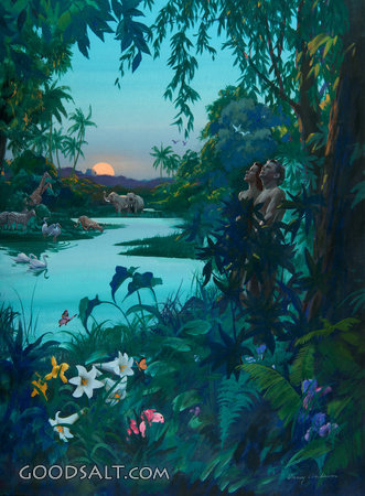 A New World Genesis 1:24-31 lilies, water, creation, lake, peaceful, jungle, world, sunset, new, river, adam, eve, home, paradise, beautiful, garden, eden, good, foliage, flowers, harry anderson, looking up, rhpas0119, a new world, it was good PROJECTION - License for PowerPoint™ PRINT – buy a print of this picture; optional frame Bible Hub |