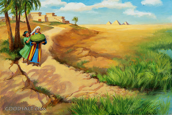 Baby Moses - Taken to the River Exodus 2:3-4 hidden, safety, miriam, pathway, baby, path, boat, river, shore, basket, mother, hiding, moses, nile, carry, reeds, review, Series, Review and Herald, part of series, rushes, jachobed, baby moses - taken to the river, rhpas0164 PROJECTION - License for PowerPoint™ PRINT – buy a print of this picture; optional frame Bible Hub |