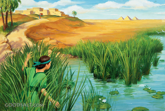 Miriam Watches over the Baby Basket Exodus 2:4-5 water, green, yellow, miriam, pathway, sister, baby, path, boat, river, watching, egypt, basket, golden, hide, hiding, moses, egyptian, nile, reeds, review, watches, pyramids, Series, Review and Herald, part of series, part of a series, bible story, my bible friends, rushes, rhpas0165, miriam watches over the baby basket PROJECTION - License for PowerPoint™ PRINT – buy a print of this picture; optional frame Bible Hub |