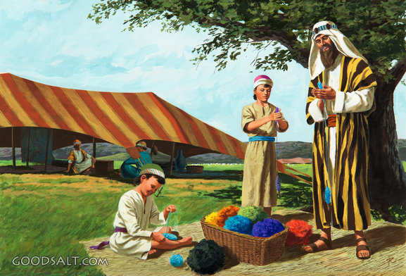 Jacob, Joseph and Benjamin - Spinning Wool for the Coat Genesis 37:1 tent, father, outside, color, spinning, wool, spindle, boy, coat, joseph, new, benjamin, youth, young, jacob, outdoors, brothers, boys, review, nomads, coat of many colors, Review and Herald, colours, part of series, part of a series, herders, jacob, joseph and benjamin, coat of many colours, rhpas0194 PROJECTION - License for PowerPoint™ PRINT – buy a print of this picture; optional frame Bible Hub |