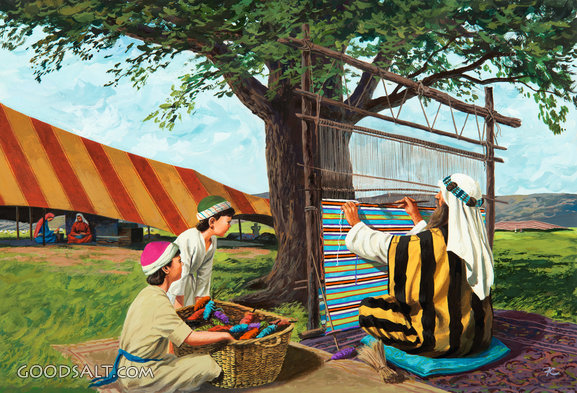 Jacob, Joseph and Benjamin - Weaving Wool for the Coat Genesis 37:3 father, weave, wool, weaving, coat, joseph, tree, sitting, seated, jacob, colors, sons, review, coat of many colors, fabric, Review and Herald, colours, part of series, part of a series, loom, jacob, joseph and benjamin, coat of many colours, weaving wool for the coat, spun, rhpas0195 PROJECTION - License for PowerPoint™ PRINT – buy a print of this picture; optional frame Bible Hub |
