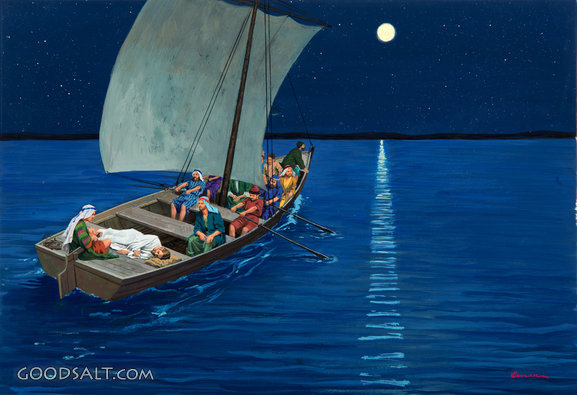 Jesus Asleep in Boat Mark 4:38 Matthew 8:23 Luke 8:22 asleep, dark, Jesus, rowing, moonlight, lake, resting, clear, peaceful, calm, sea, boat, blue, night, sail, sailing, sleep, sleeping, fishermen, disciples, review, row, new testament, Review and Herald, part of series, part of a series, my bible friends, jesus asleep in boat, rhpas0218 PROJECTION - License for PowerPoint™ PRINT – buy a print of this picture; optional frame Bible Hub |