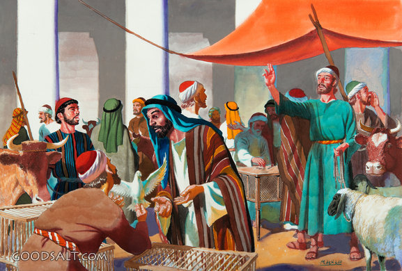 Traders in the Temple John 2:14 Mark 11:11 Mark 11:15 inside, cow, cattle, buying, passover, selling, sell, buy, bull, sheep, temple, money, crowd, courtyard, commerce, market, greed, oxen, changers, doves, new testament, merchants, Trades, Traders, money changers, den of thieves, part of series, part of a series, my bible friends, manning de v. lee, camb_v.2p38-39traders001cml, for sale PROJECTION - License for PowerPoint™ PRINT – buy a print of this picture; optional frame Bible Hub |
