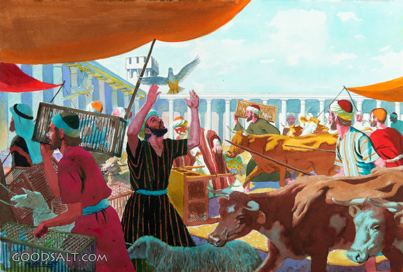 Temple Being Cleansed John 2:16 hurry, hurrying, running, sheep, temple, cleansed, courtyard, fleeing, market, oxen, doves, review, merchants, Review and Herald, money changers, jesus cleanses the temple, den of thieves, sellers, part of series, part of a series, my bible friends, manning de v. lee, camb_v.2p42-43traders003cml, temple being cleansed, rhpas0234, wares PROJECTION - License for PowerPoint™ PRINT – buy a print of this picture; optional frame Bible Hub |