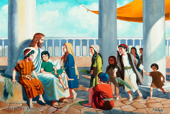 Children With Jesus in the Temple Matthew 21:15-16 surround, inside, christ, Jesus, teach, teaching, around, gathered, temple, courtyard, sitting, seated, sarah, mark, children, review, welcomes, Greets, part of a series, my bible friends, manning de v. lee, camb_v.2p44-45children004cml, children with jesus in the temple, rhpas0235 PROJECTION - License for PowerPoint™ PRINT – buy a print of this picture; optional frame Bible Hub |