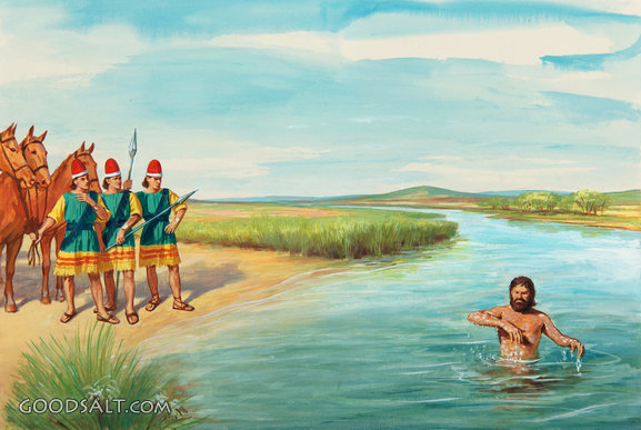 Naaman Washes in Jordan 2 Kings 5:13-14 cure, water, miracle, dunking, jordan, river, elisha, naaman, leprosy, bathing, washing, review, part of a series, my bible friends, story of naaman, naaman washes in jordan, rhpas0281 PROJECTION - License for PowerPoint™ PRINT – buy a print of this picture; optional frame Bible Hub |