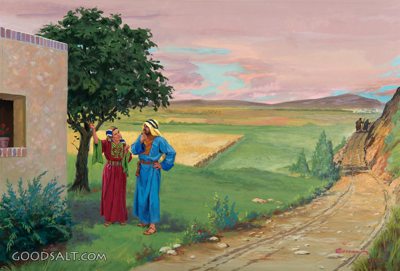 Room for Elisha - Upon the Roof 2 Kings 4:10 pointing, shunammite, rooftop, couple, elisha, valley, wife, husband, roof, crops, family works together in the garden, rhpas0301 PROJECTION - License for PowerPoint™ PRINT – buy a print of this picture; optional frame Bible Hub |