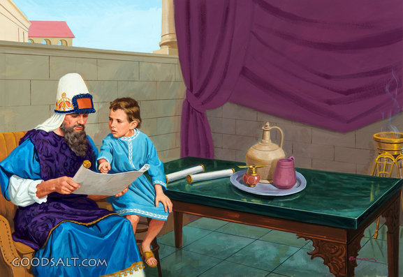 Joash - the Priest and the Scripture 2 Kings 11:1-3 teaching, table, boy, teacher, scroll, priest, temple, jehoiada, joash, palace, furnishings, rhpas0332 PROJECTION - License for PowerPoint™ PRINT – buy a print of this picture; optional frame Bible Hub |