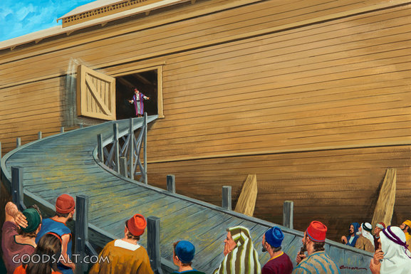 preaching, warning, closing, ark, crowd, door, flood, close, pleading, noah, checking, level, rhpas0364