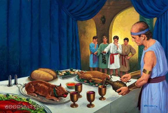 Daniel and His Friends - the Kings's Food Daniel 1:8 table, food, king, daniel, meat, wine, nebuchadnezzar, court, servant, friends, rhpas0392, strange foods, wont eat PROJECTION - License for PowerPoint™ PRINT – buy a print of this picture; optional frame Bible Hub |