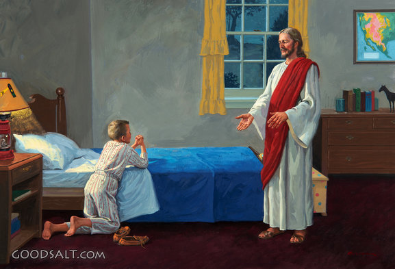 Jesus, kneeling, bedtime, prayer, boy, present, praying, bed, kneels, rhpas0423