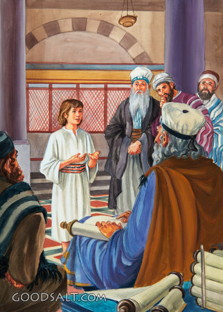 Jesus in the Temple Luke 2:46 childhood, Jesus, scroll, temple, beautiful, teachers, Scriptures, walls, columns, rabbis, the bible story, william hutchinson, rugs, rhpas0719 PROJECTION - License for PowerPoint™ PRINT – buy a print of this picture; optional frame Bible Hub |