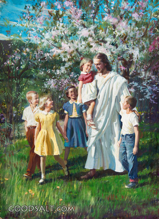 Children Walking With Jesus Matthew 19:13-14 happy, walk, carrying, flowering, christ, Jesus, look, looking, spring, child, tree, visit, laugh, up, orchard, children, walking, boys, girls, publishing, walks, harry anderson, at, carries, rhpas0787, review & herald PROJECTION - License for PowerPoint™ PRINT – buy a print of this picture; optional frame Bible Hub |