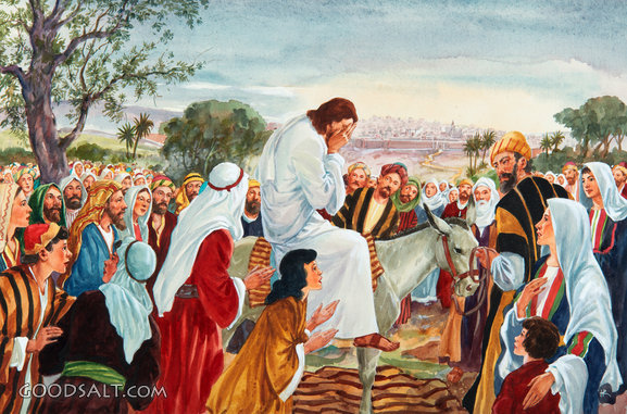 Christ Weeping over Jerusalem Matthew 23:37-39 Luke 19:41-44 people, staring, colorful, christ, Jesus, over, jerusalem, face, weeping, donkey, on, trees, hands, crowds, sits, at, with, Weeps, costumes, herbert rudeen, the bible story, him, his, rhpas0794 PROJECTION - License for PowerPoint™ PRINT – buy a print of this picture; optional frame Bible Hub |
