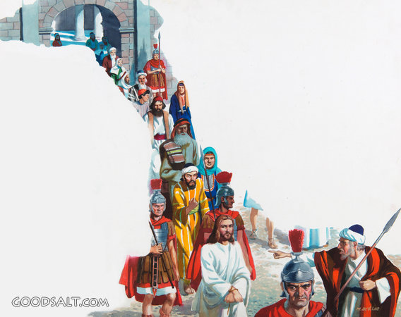 Via Dolorosa Was the Path or the Procession John 18:28 christ, Jesus, procession, downhill, trial, street, jerusalem, crowd, easter, passion, walking, soldiers, via dolorosa, rhpas0806 PROJECTION - License for PowerPoint™ PRINT – buy a print of this picture; optional frame Bible Hub |
